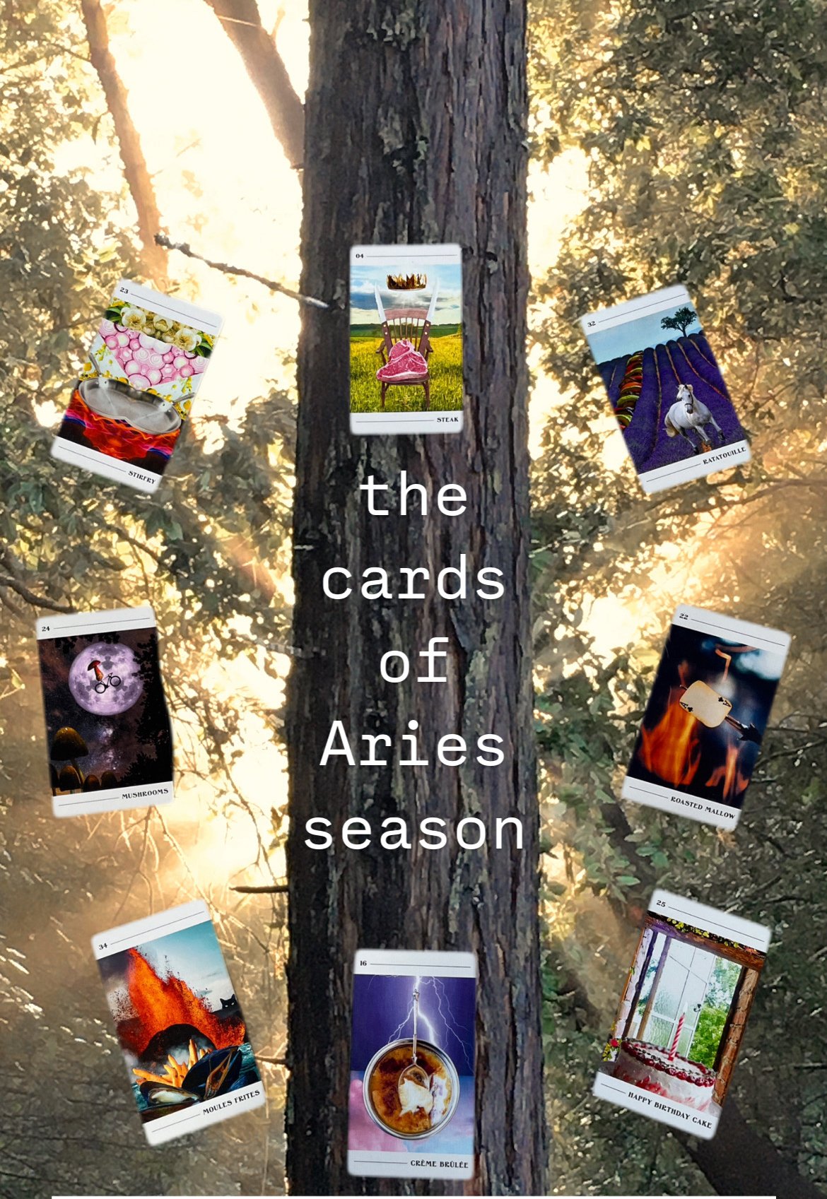 In the Cacio e Pepe Tarot, Aries season is ruled by fire and appetite. These cards tend to courage, initiation, and creative momentum. They ask us to act before doubt can talk us out of what we want.